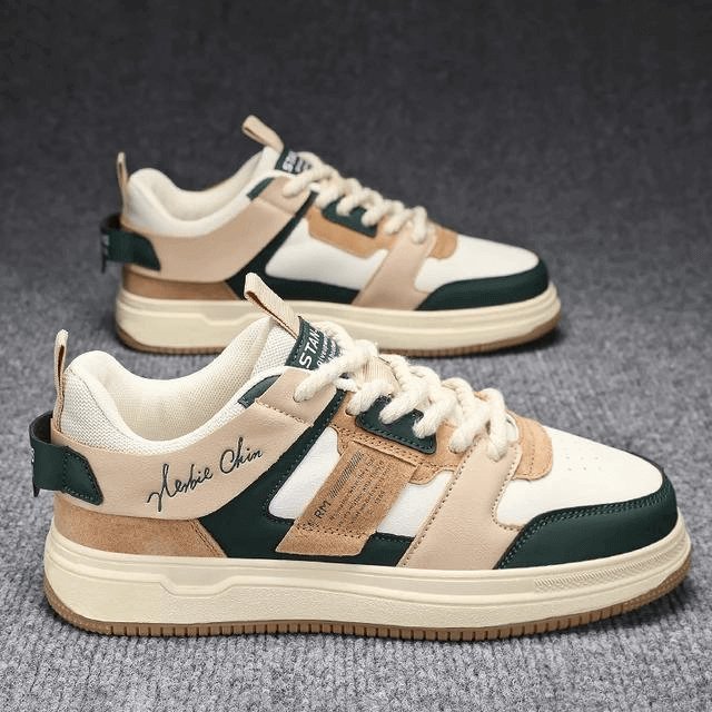 Timber Twist – Baskets Rétro Beige et Vert au Style Unique